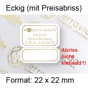 Wenn Sie ein Etikett in einer nicht runden oder eckigen Form suchen, finden Sie hier viele Standardformen, für die alle Stanzwerkzeuge bereits vorliegen und die wir darum kurzfristig liefern können. Klicken Sie einfach auf die Form, die Ihnen gefällt, und Sie gelangen direkt zum Artikel. Dort können Sie dann auch die Papier- und Druckfarben auswählen und Ihr Logo hochladen.