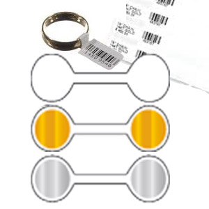 Klappetikett mit Mittelsteg, weiß, gold oder silber